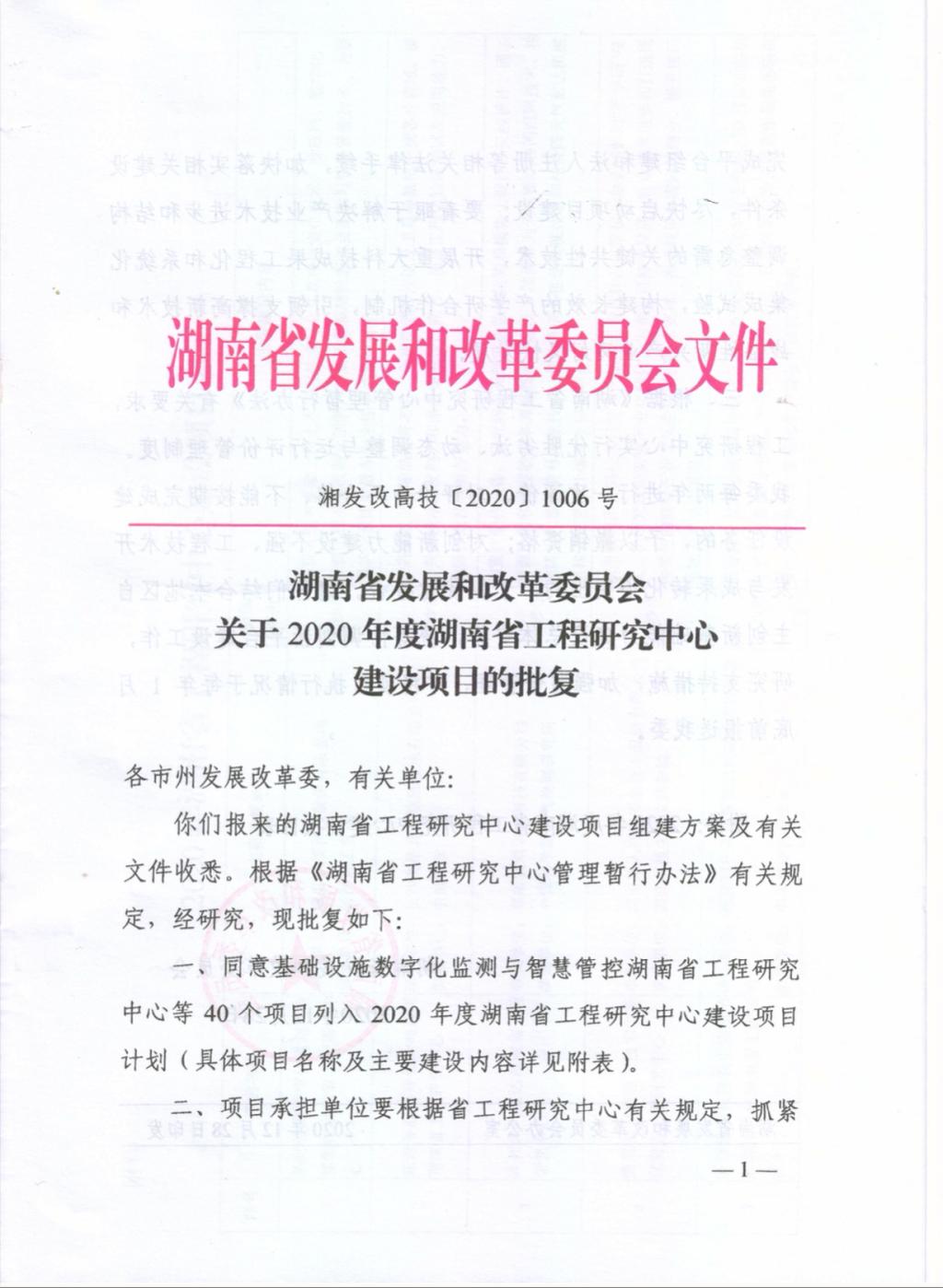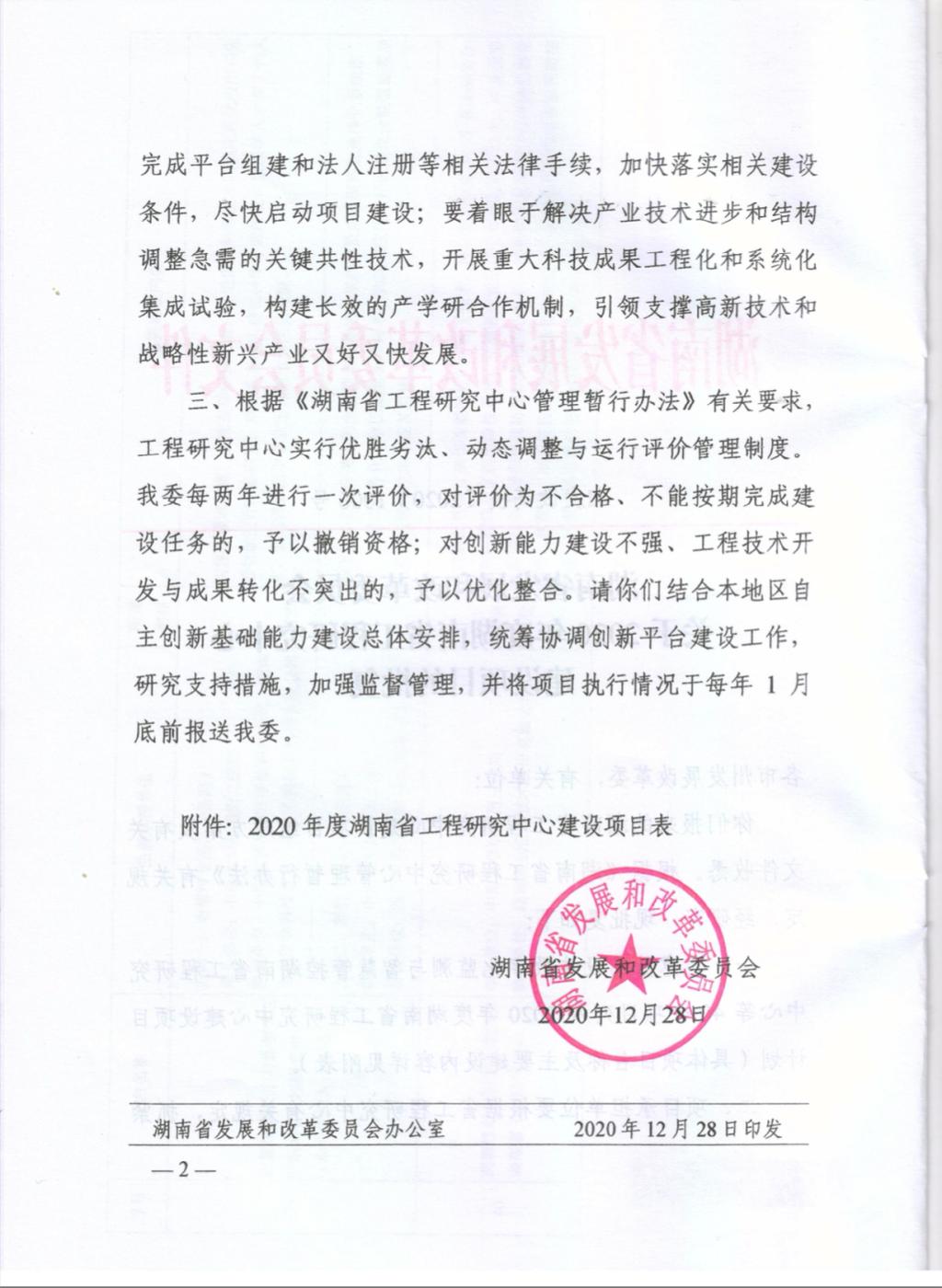 湖南省发展和改革委员会关于2020年度湖南省工程研究中心建设项目的批复(序号24)_副本.pdf