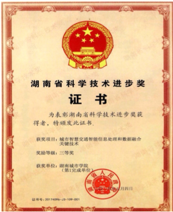 “城市智慧交通智能信息处理和数据融合关键技术”省科技进步三等奖