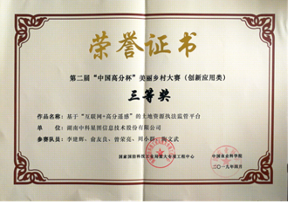“基于互联网+高分遥感的土地资源执法监管平台”国防科技工业局重大专项工程三等奖