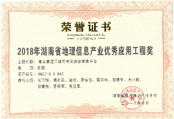 “常安高速三维可视化综合管理平台”省地理信息产业协会应用工程奖