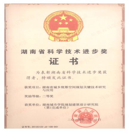 “湖南省城乡统筹空间规划关键技术研究与应用”获省科技进步二等奖