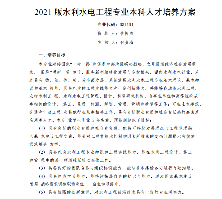 水利水电2021版人才培养方案