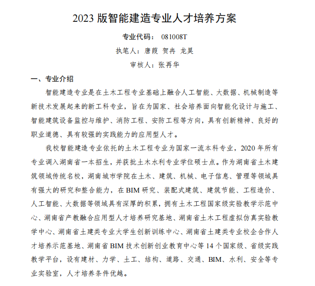 智能建造专业2023版人才培养方案